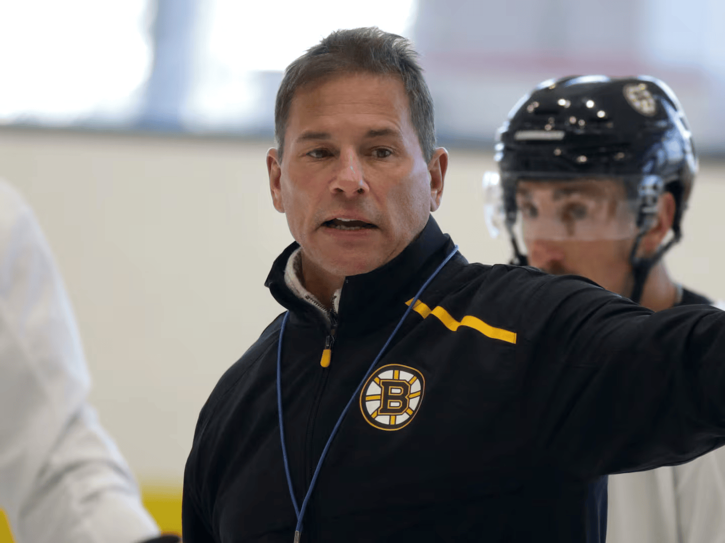 Bruce Cassidy during Bruins practice. (Photo by Jonathan Wiggs).